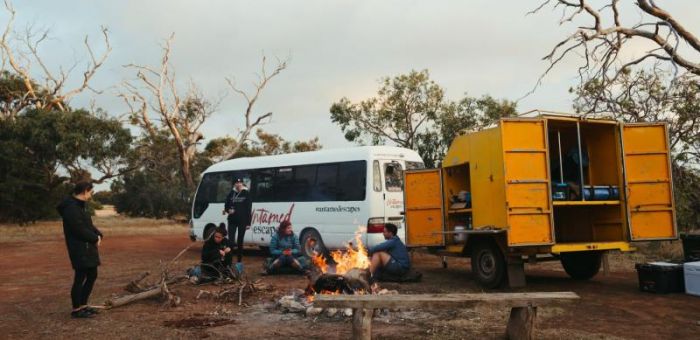 Today, there's an early start to catch your 6.45 am SeaLink bus transfer from Adelaide CBD to the ferry terminal at Cape Jervis. Board the ferry for a 45-minute cruise to Penneshaw on Kangaroo Island. Your Untamed Escapes Guide will meet you here and give you an overview of the adventure ahead for the next few days. Throughout your tour, you'll also have the opportunity to become a citizen scientist and contribute to conservation efforts and research on the island in partnership with Passport to Recovery. You can download the App on the way over on the ferry, so you're ready to go! Hop on board the bus and take a scenic coastal drive to Pennington Bay on the island's south coast. With powerful swells rolling in, this beach is famed for its epic surf breaks. Climb the 500 steps to the top of Prospect Hill, the highest point on Kangaroo Island, for rewarding views and to get your bearings. Kangaroo Island is the world's oldest bee sanctuary and is home to the only pure strain of Ligurian Bee in the world. Pop into a honey farm to learn all about these fascinating creatures and, of course, do a tasting. We'll have a picnic lunch here before setting off to Emu Ridge Eucalyptus Oil Distillery and family-owned Dudley Wines, where you can sprawl out on their lush lawns and take in the incredible views over the ocean - the perfect place to relax and connect with your fellow travellers. Come late afternoon, arrive at our campsite, aptly named "Happiness". Featuring private access to one of Kangaroo Island's most stunning beaches - Antechamber Bay, you'll be right at home here for the next two nights. Enjoy some free time to relax or take a walk down to the beach. Tonight, roll out your swag underneath the billions of stars of the Milky Way and feel an incredible connection with nature. Today we drive approximately 240 km.