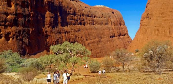 On the final day of the tour, an early start is rewarded with a spellbinding Kata Tjuta sunrise. Translating to the Pitjantjatjara word for 'Many Heads', the 36 domes of Kata Tjuta are a defining feature of the Red Centre landscape both topographically and spiritually. Rising 546 metres above the surrounding plain, its tip is the highest point for miles, while the site's ridges and ravines are closely connected with numerous Indigenous creation-time stories. Many of these stories are kept secret from outsiders, but you'll learn a little about the local Anangu culture and appreciate the beauty of their land on a rewarding hike. Your outback adventure ends in the late morning on our return to Yulara. For those departing from Uluru Airport, complimentary transfers are available from the resort. There are also bus transfers from Yulara to Alice Springs. See the Know Before You Go information below. The driving distance today is approximately 120km.