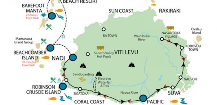 0900hrs: Robinson Crusoe Island to the stunning Coral Coast. Stop in Sigatoka town for a market visit then to Bedarra Inn to pick packed lunch before proceeding to the Waterfalls. Enjoy Rainforest Trek and the largest waterfall in Coral Coast. Overnight in Nadi accommodation (included)