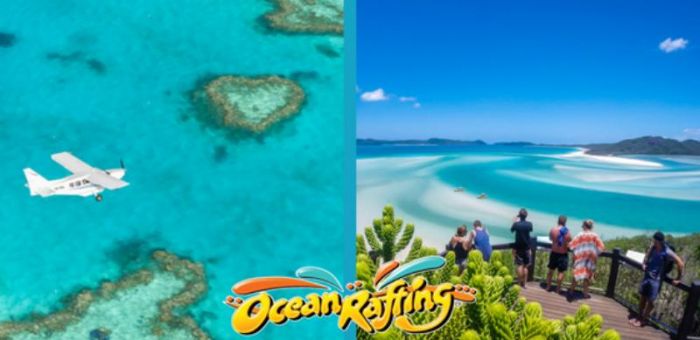 Enjoy the best of the Whitsunday Islands and Great Barrier Reef in one day with a Whitsunday scenic flight and Ocean Rafting Northern Exposure adventure! Experience the Whitsundays’ ultimate destinations… Heart Reef, Whitehaven Beach, Hill Inlet and secret snorkelling locations.