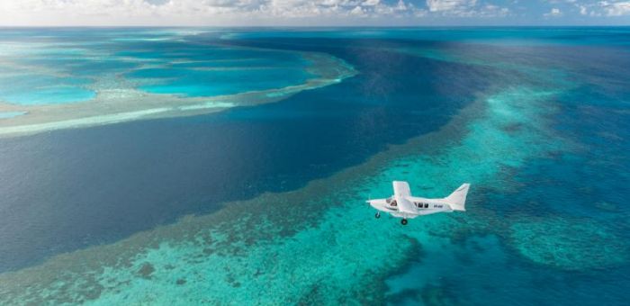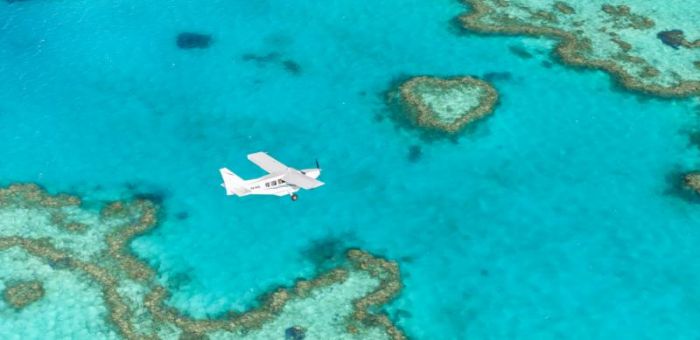 Enjoy a bird’s eye view of many of the 74 Whitsunday Islands, fly over Whitehaven Beach and picture postcard Hill Inlet before heading out to the Great Barrier Reef and experiencing one of the most photographed reef locations, Heart Reef. The comfortable fixed wing aircraft offers big window viewing, pilot commentary and the best views of the Whitsundays!