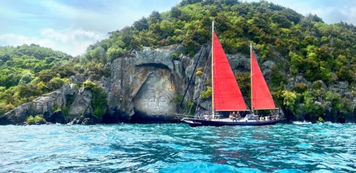 Get your cameras out as we head to Taupo, a lakefront town right in the heart of the North. Tonight we’ve got something special lined up - a sail across the lake. The majestic scenery will wow us, NZ you are beautiful!