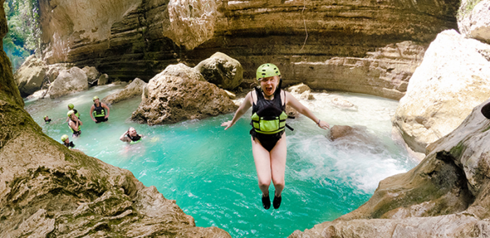 Today we’ll stop for a thrilling canyoneering adventure at Kawasan Falls that’ll have us leaping into bright blue pools.
