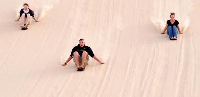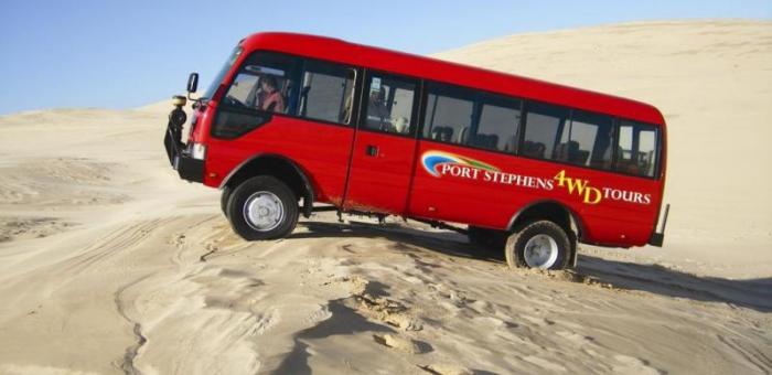 Port Stephens 4WD & Sand Boarding - Take a big 4WD vehicle over the huge dunes to find the biggest dunes possible for all the sand boarding you can handle. Embrace the challenge, take a deep breath and whizz down huge sand dunes on special boards designed to fly. ($25 extra, choose combo product if you would like to add this).