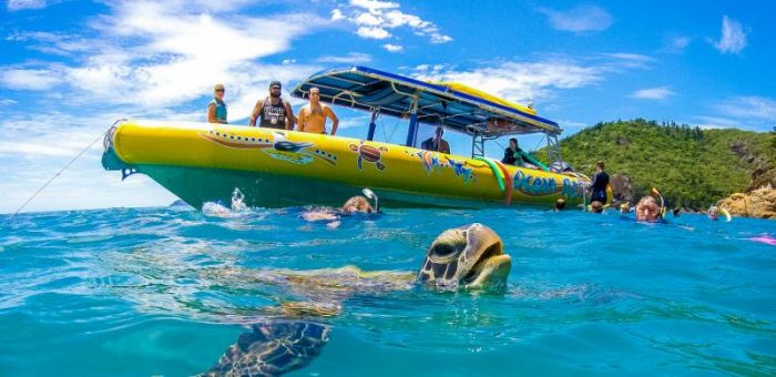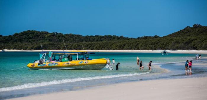 The semi rigid inflatable vessels are super fast allowing guests to experience a fun ride, adventure and education amongst the natural beauty of the Whitsundays. 32 passengers at most allows for personal snorkelling lessons and the pleasure of a small group. A buffet style lunch is served (for those purchasing the "included lunch" package or you can brig your own) at the beach with plenty of time to swim in the turquoise ocean or just relax on the silica white sand.