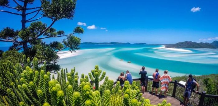 The Southern Lights tour visits both the northern and southern ends of Whitehaven Beach. Enjoy approximately two hours relaxing on the world famous white silica sand and enjoy a guided bushwalk to spectacular Hill Inlet Lookout to view and capture photographs of the stunning swirling silica sands and aqua water. Snorkel for over an hour at Border Island, Dumbell Island or one of our “secret” snorkel spots, enjoying the amazing hard and soft corals of the fringing reefs.