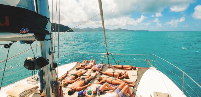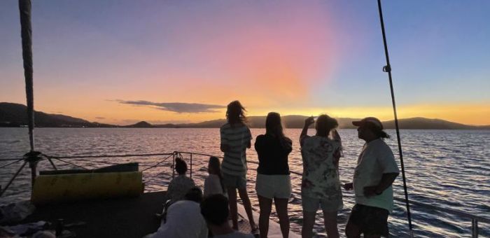 Check-in opens 30mins prior to departure at Coral Sea Marina North End – Meeting point B Sit back relax and enjoy a sail for 2 hours to the first snorkel location. Here you will meet the local marine life beneath the surface. The fringing reefs in these locations are home to some of the most spectacular coral formations and an incredible range of marine life in the Great Barrier Reef and Whitsundays. Step back aboard Tongarra and enjoy a delicious lunch on the deck in the middle of a small tropical oasis. The perfect place to relax and soak up those views before setting sail once more. Our accredited ECO guides will give a history talk about the Islands and marine life. We are accredited Climate Actions Leaders and love to share our knowledge with our customers. After lunch, it’s only a short trip to the spectacular Langford Island Sandbar. Snorkel off the beach with the resident turtles, hike the scenic bushwalk or relax on the sands of this idyllic location. Relax, play and explore the island for 2 hours and treat yourself to some fun activities such as paddle boarding and a banana boat ride. Once back on board, hoist the sails and help take the helm as you chart your course back to Coral Sea Marina, returning with the sunset sail. So, grab your camera, feel the ocean breeze in your hair and adventure to the Whitsunday’s best lesser-known locations…
